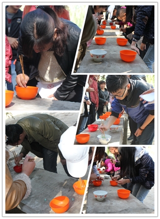 本次活動主要目的之一就是團隊協作,所以“玩游戲贏食材,美食廚藝大比拼”特別應景兒。選號、分組、游戲規則說明,各小組推薦參賽選手,挽袖子,上場,預備,開始……..好一個漂亮流暢的進程動作,“碗中運珠”的游戲一開始就吸引了現場眾多人的圍觀,歡笑聲,喝彩聲響成一片,參賽選手個個都不敢懈怠,雙目圓睜,可是小小玻璃珠子就是調皮,它們不是不上筷子,就是跳到碗外邊去了,甚至進了碗又神奇般地再次跳了出來。感嘆聲、歡笑聲頓時響成一片?!安恍校腥俗鞅?,這顆珠子不能算”。評委桂娟的眼睛何其明亮,現場一次沸騰起來,歡樂也不能破壞游戲規則,經過緊張激烈的角逐,第一名為:第六組,成績為26顆;第二名為:第二組,成績為16顆;第三名為:第三組,成績為12顆;第四名為: 第五組,成績為11顆;第五名為:第四組,成績為10顆;第六名為:第一組 ,成績為6 顆。