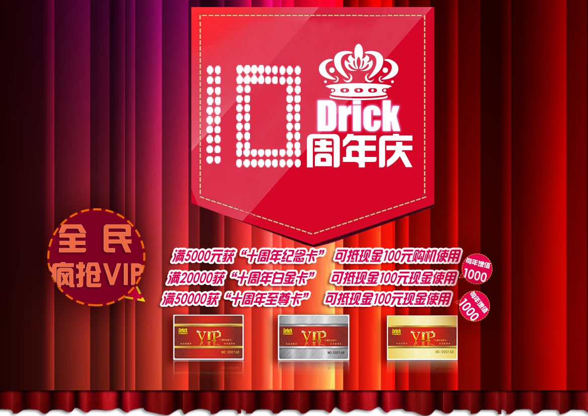 ◆   VIP周年紀念卡從發卡之日起立即生效,持紀念卡的客戶單次購買設備滿5000元即可享受100元現金抵用的尊貴權利,以此類推,上不封頂。