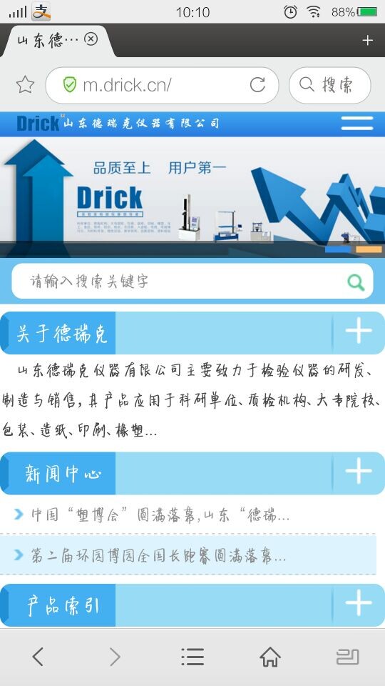 山東德瑞克作為引領創(chuàng)新技術(shù)的領導者,一直不斷的創(chuàng)造新技術(shù),挖掘新技能,學習新知識;“不斷創(chuàng)新”貫穿著德瑞克公司的發(fā)展歷程。我們秉承“客戶滿意是我們永無止境的追求”的服務準則,為方便客戶更快速,更便捷的了解我們的產(chǎn)品,2015年新年伊始,特推出手機網(wǎng)站“m.drick.cn”“m.jndrktest.com”“m.worlddrick.com”供大家瀏覽,為全球客戶提供檢測儀器行業(yè)最新資訊,最新發(fā)展方向。