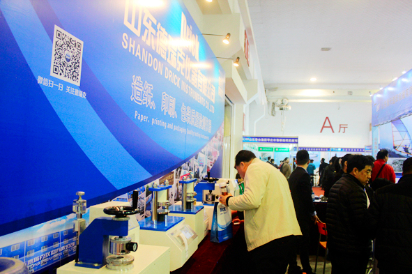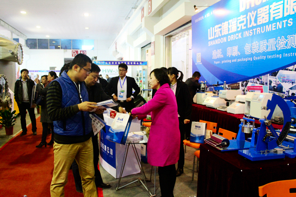 山東(國際)制漿造紙技術(shù)及裝備展覽會已成功舉辦了15屆,本次舉辦地點在山東機械設(shè)備展覽中心,展會展出面積約20000平米,專業(yè)觀眾達(dá)到2萬人次,圍繞造紙新技術(shù)和節(jié)能降耗組織了數(shù)場較高水平的技術(shù)專題講座。山東德瑞克儀器有限公司攜拉力機、抗壓機、耐破度儀、吸水性測定儀、平滑度儀等十余種新型檢測儀器出展,產(chǎn)品的美觀,穩(wěn)定,智能化,適中的價格,深得與會客戶的一致認(rèn)可與好評。